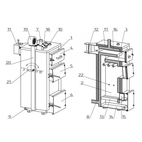 | 2-Камера згоряння (топка) | 13 — Колосникова решітка |